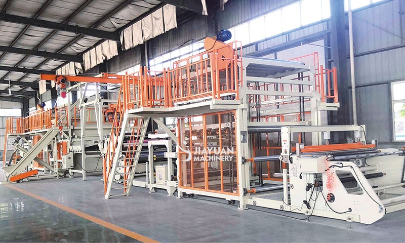 The main feature of this machine is for non-asphalt-based waterproofing membrane production linemachine equips with front material storage, coating glue, edge film covering, complete film coveringcoating sand, roll material storage, auto cutting, rewinding roll, unloading material. Meanwhilemachine has auto correction control system, steady glue output svstem and PLC touch screensystem. The runner of coating die has special designation, uniformity glue coating, non-stop whenroll material change, high level automation,easy operation, save labor, improve efficiency andreduce material waste. Machine width can be customized according to customer requirements.